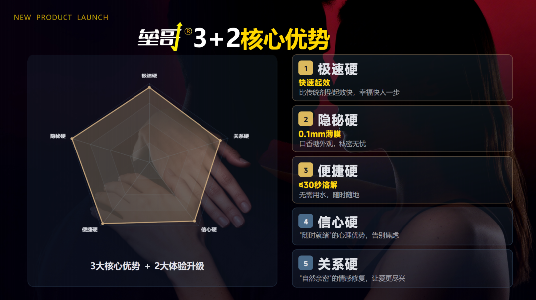 其中,万众瞩目的焦点无疑是全新力作——垒哥枸橼酸西地那非口溶膜。这款产品以其0.1mm的极致轻薄,实现了物理层面的“隐形”,彻底颠覆了传统ED治疗药物的使用体验,填补市场空白,开启一个全新的品类时代。